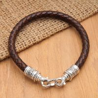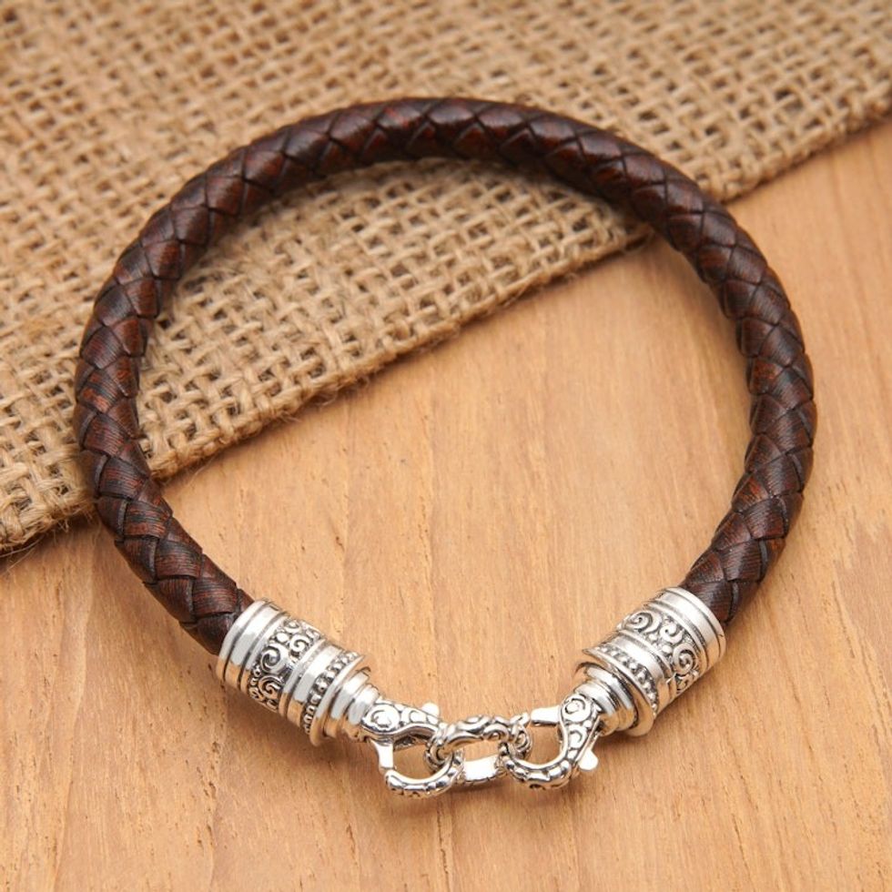 Men's Leather Braided Bracelet with Sterling Silver Clasp 'Buddha Curl Wavy' Item ID: 2671821638