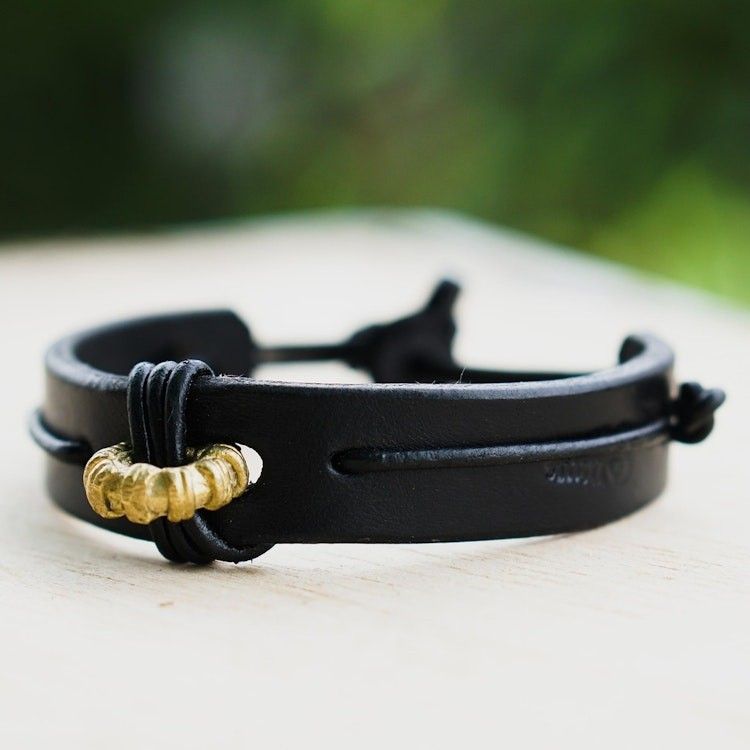 Men's Leather Wristband Bracelet 'Fortunate Son in Black' Item ID: 2671806324