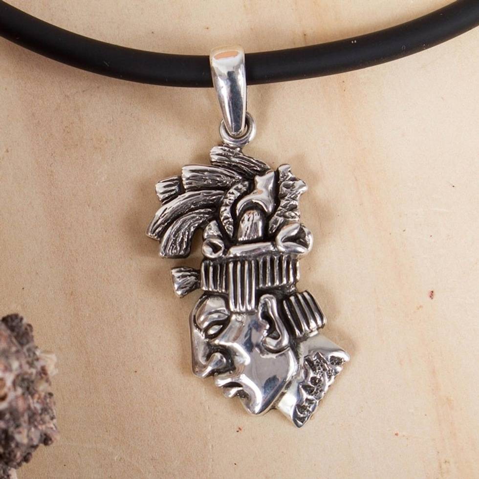 Men's Maya-Themed Taxco Sterling Silver Pendant Necklace 'Taxco Pacal' Item ID: 2671808478