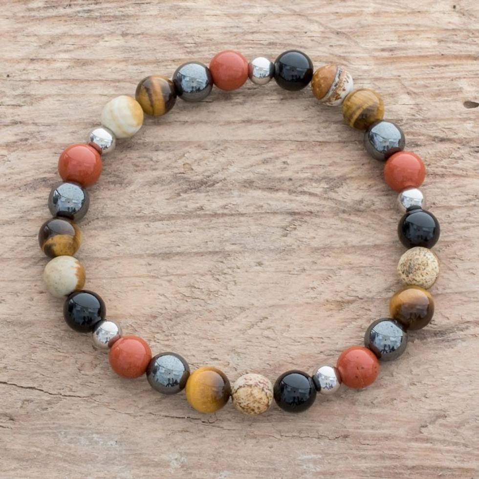 Men's Multi-Gemstone Beaded Stretch Bracelet from Costa Rica 'Planetary Harmony' Item ID: 2669933788