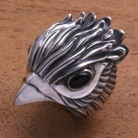 Men's Obsidian and Sterling Silver Hawk Ring from Bali 'Sharp Hawk' Item ID: 2671667395