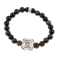 Men's Onyx Stretch Bracelet with Taxco Silver Sun Pendant 'Sublime Sun' Item ID: 2671798614