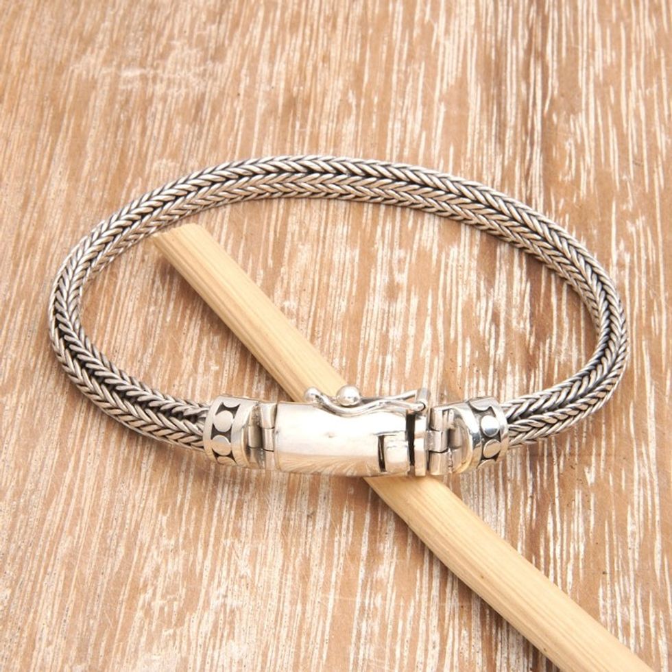 Men's Polished Sterling Silver Naga Chain Bracelet 'Magnificent Halo' Item ID: 2671764476