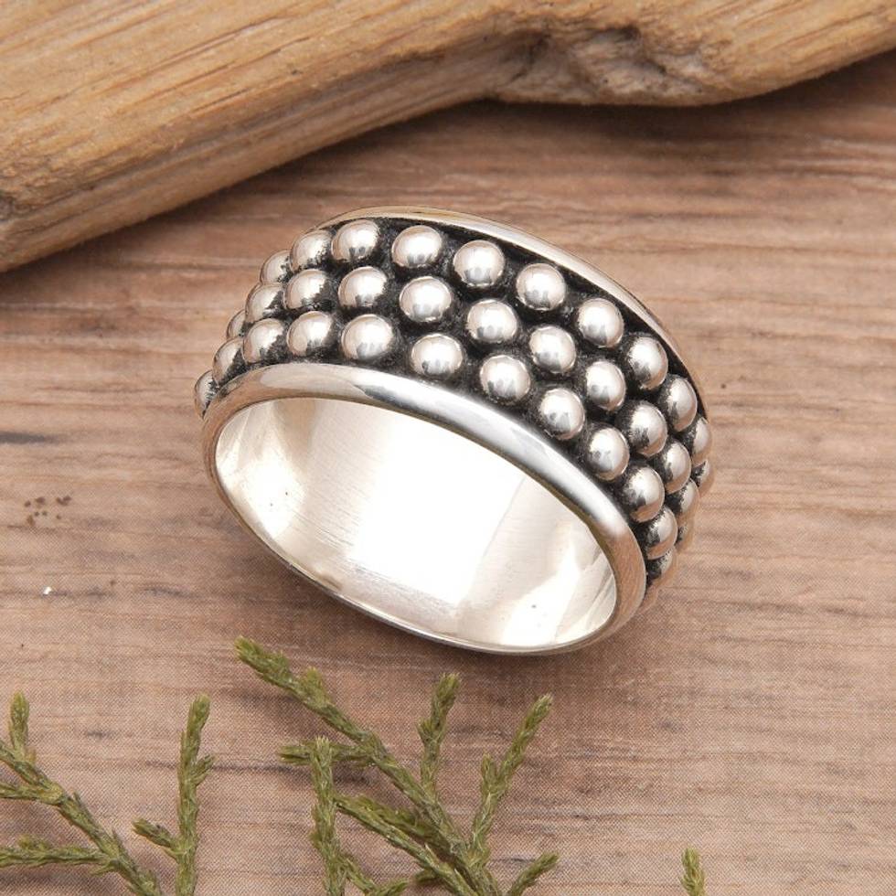 Men's Polka-Dot Patterned Sterling Silver Band Ring 'Hero's Dots' Item ID: 2670122260