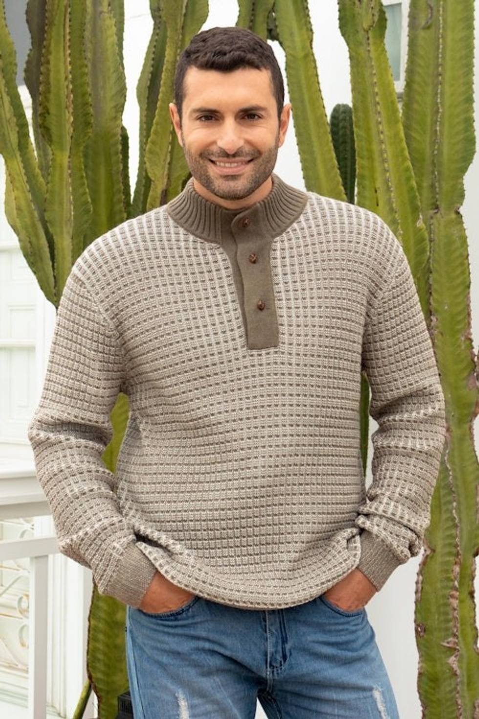 Men's Pullover Sweater in Polyester and Baby Alpaca 'Reclaimed Chic' Item ID: 2671819595