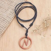 Men's Sawo Wood Bolt Pendant Necklace with Cotton Cord 'Balinese Bolt' Item ID: 2671747925