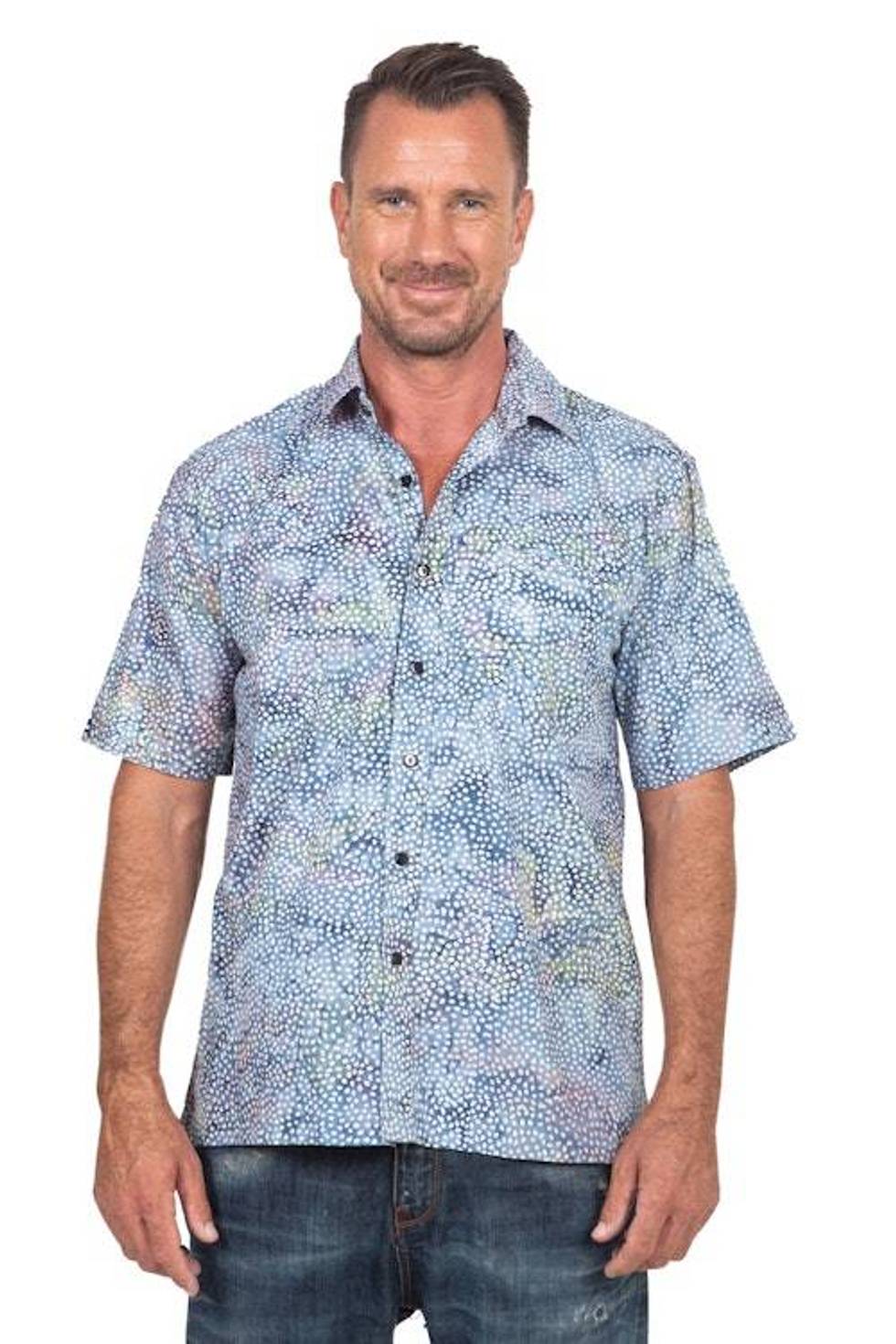 Men's Short Sleeved Button Up Shirt from Indonesia 'Pebble Road' Item ID: 2676667755