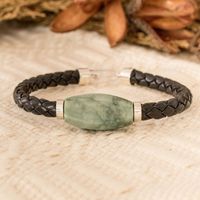 Men's Silver Cord Bracelet with Apple Green Jade Pendant 'Bold Essence' Item ID: 2671769151