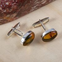 Men's Sterling Silver and Amber Oval Cufflinks from Mexico 'Amber Harmony' Item ID: 2671808606