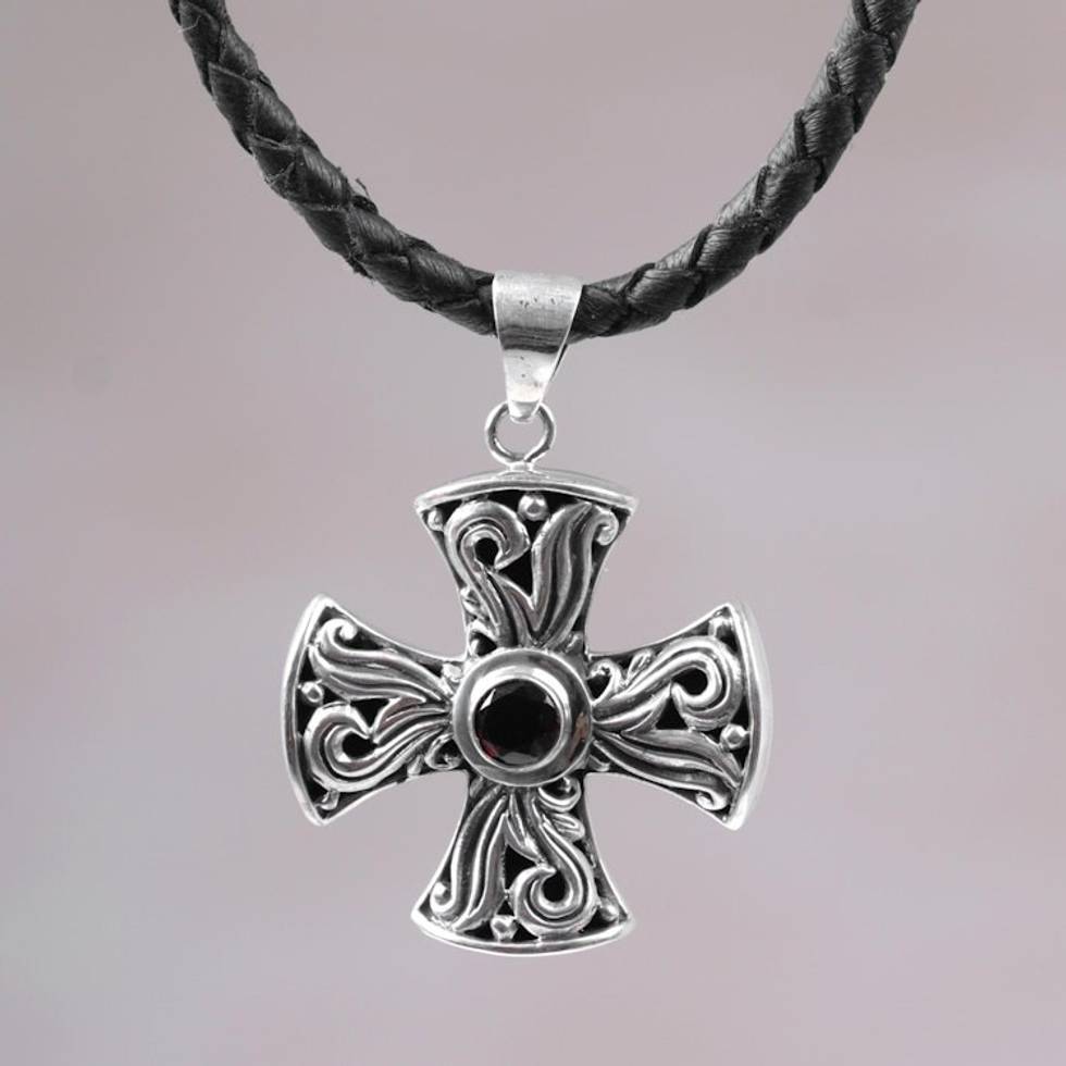 The Sterling Silver and Garnet Religious Necklace, 'Balinese Cross' is so beautiful!