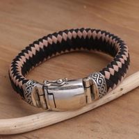 Men's Sterling Silver and Leather Braided Bracelet 'Two Brothers' Item ID: 2669922332