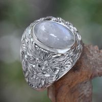 Men's Sterling Silver and Rainbow Moonstone Ring 'Lion's Charisma' Item ID: 2669920802