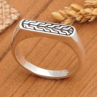 Men's Sterling Silver Band Ring with Geometric Details 'Gallant Hopes' Item ID: 2671690491