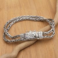 Men's Sterling Silver Bracelet with Basketweave Chains 'Protective Leader' Item ID: 2671763261