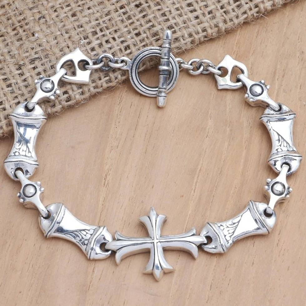 Men's Sterling Silver Bracelet with Cross Motif 'Blind Faith' Item ID: 2669922108