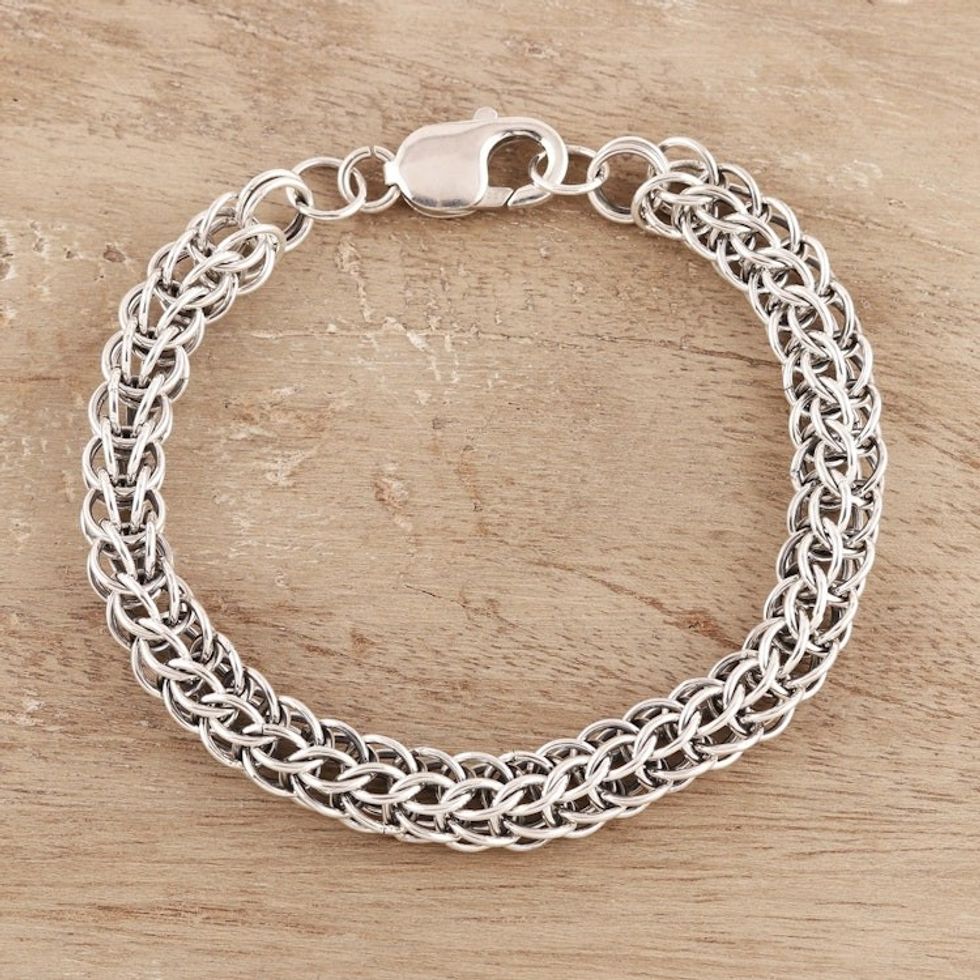 Men's Sterling Silver Byzantine Chain Bracelet from India 'Bold Byzantine' Item ID: 2671792158