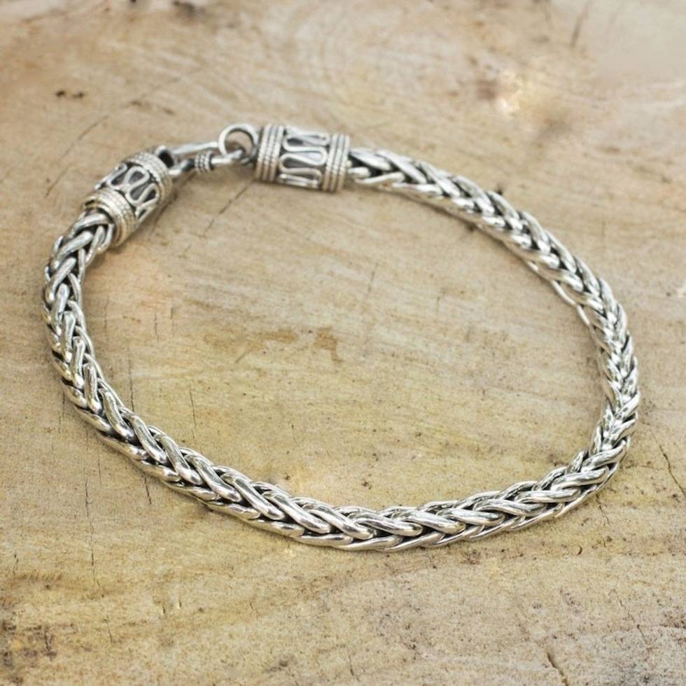 Men's Sterling Silver Chain Bracelet from Thailand 'Strength' Item ID: 2671803158