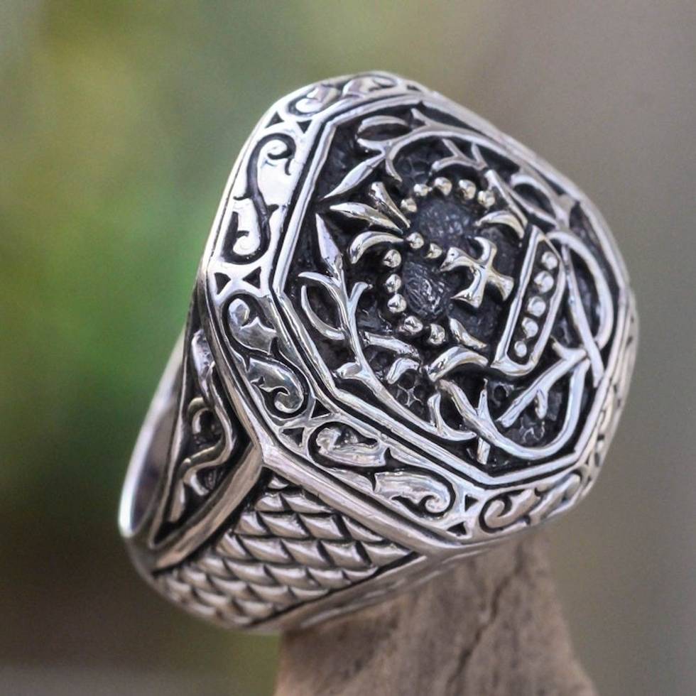 Men's Sterling Silver Cross Signet Ring 'Cardinal' Item ID: 2669921340