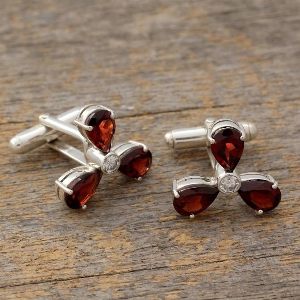 Men's Sterling Silver Cubic Zirconia Garnet Cufflinks 'Bold Scarlet' Item ID: 2671794886
