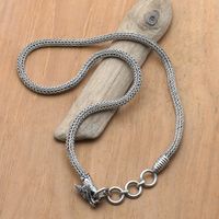 Men's Sterling Silver Dragon-Themed Braided Pendant Necklace 'Dragon Grandeur' Item ID: 2671765574