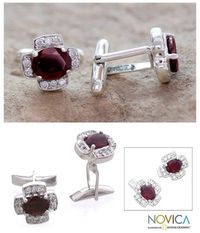 Men's Sterling Silver Garnet Cufflinks Cubic Zirconia 'Sophisticate' Item ID: 2671620108