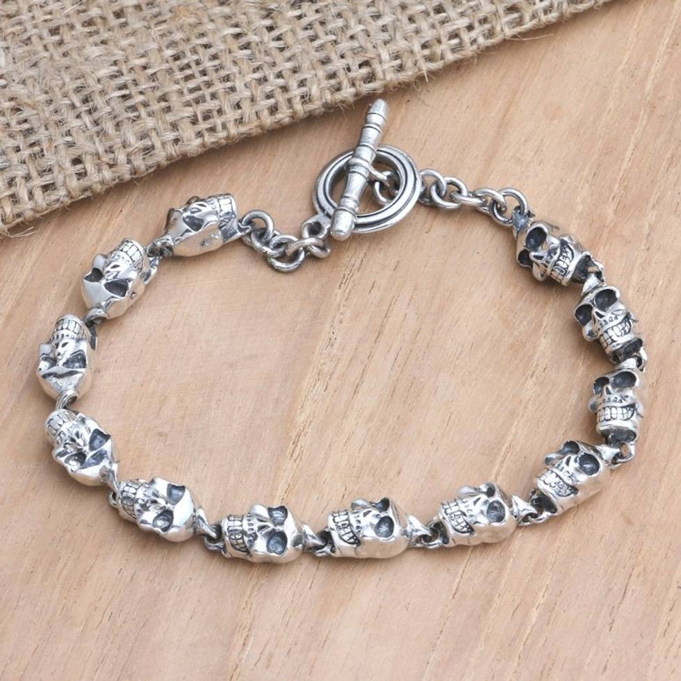 Men's Sterling Silver Link Bracelet with Skull Motif 'Palace of Skulls' Item ID: 2669922041