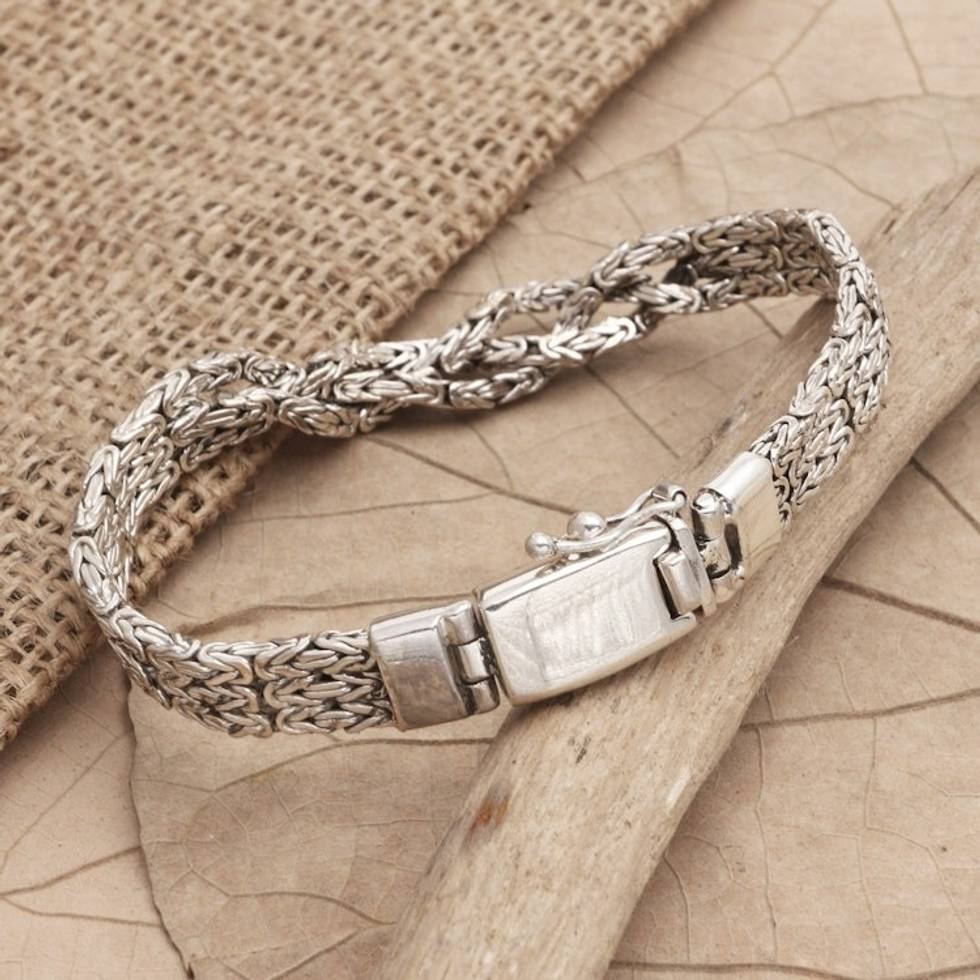 Men's Sterling Silver Modern Chain Bracelet from Bali 'Endless Union' Item ID: 2671747793