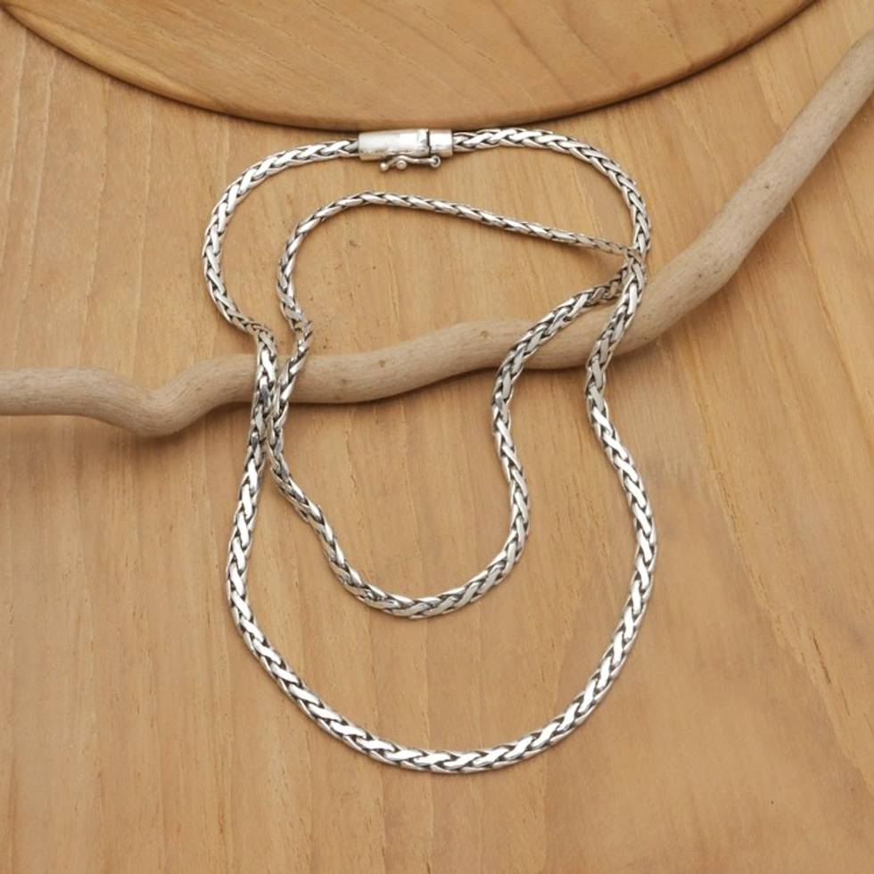Men's Sterling Silver Necklace with Polished Wheat Chain 'Shining Strength' Item ID: 2671670218