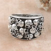 Men's Sterling Silver Skull Domed Ring from India 'Underworld Treasure' Item ID: 2671667442