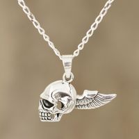 Men's Sterling Silver Winged Skull Necklace from India 'Skull Flight' Item ID: 2671789532