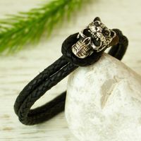 Men's Taxco Silver Black Leather Jaguar Knight Bracelet 'Jaguar Warrior Strength' Item ID: 2671640126