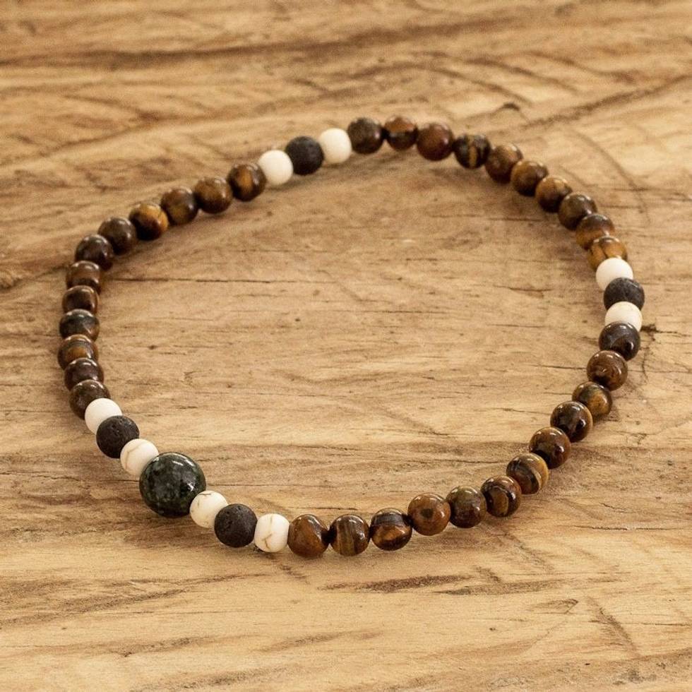 Men's Tiger's Eye Jade Lava Stone Beaded Stretch Bracelet 'Wild Jungle' Item ID: 2671771600