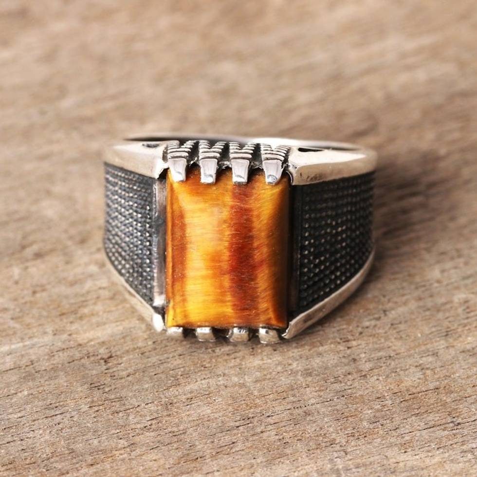 Men's Tiger's Eye Ring Crafted in India 'Bold Strength' Item ID: 2671667345