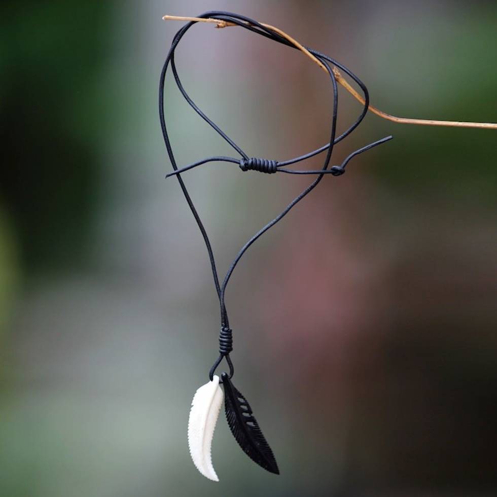 Men's Unique Bone Pendant Necklace 'Totem Feathers' Item ID: 2671820958