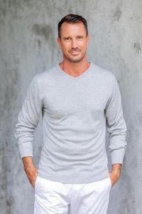 Men's V-Neck Cotton Blend Pullover in Pearl Grey from Peru 'Warm Adventure in Pearl Grey' Item ID: 2669904216