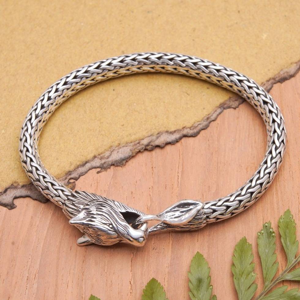Men's Wolf-Themed Sterling Silver Chain Pendant Bracelet 'Wolf Glory' Item ID: 2671762927