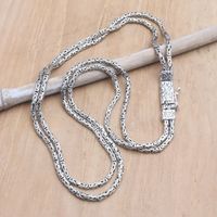 Mens Sterling Silver Double Strand Chain Necklace from Bali 'Layer of Energy' Item ID: 2671556397