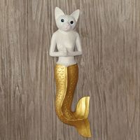 Mermaid Cat Wall Sculpture in White and Gold from Bali 'Mermaid Kitty in White' Item ID: 2671821306