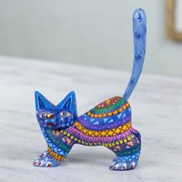 Mexican Alebrije Cat Sculpture 'Playful Blue Kitten' Item ID: 2669897785