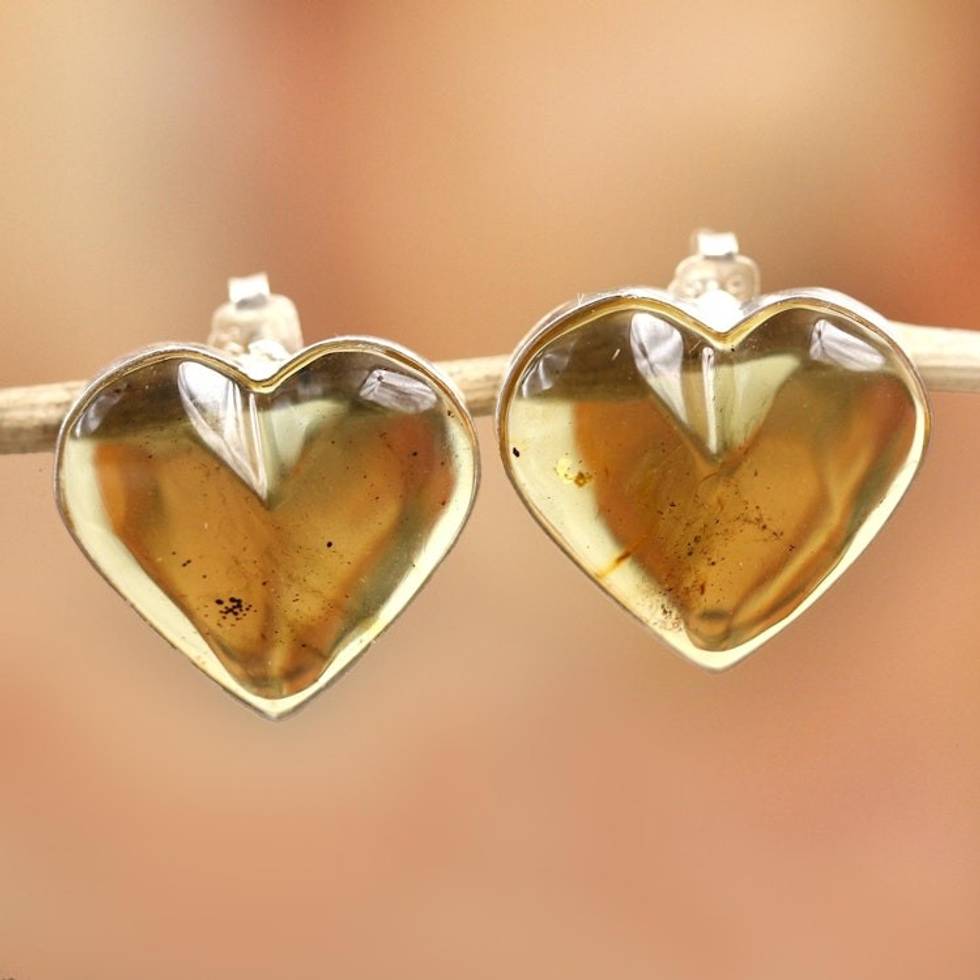 Mexican Amber Hearts with Sterling Silver Button Earrings 'Honey Essence' Item ID: 2671639110