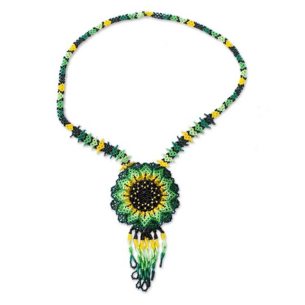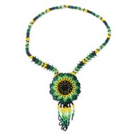 Mexican Artisan Crafted Sunflower Beaded Pendant Necklace 'Sunlit Flower' Item ID: 2671809130