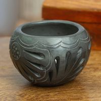 Mexican Barro Negro Flower Pot with Peacock Motifs 'Peacock Luxury' Item ID: 2669932221