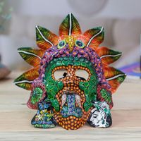 Mexican God of Fire Lacquered Hand-Painted Papier Mache Mask 'Jaguar Fire Huehueteotl' Item ID: 2671807539