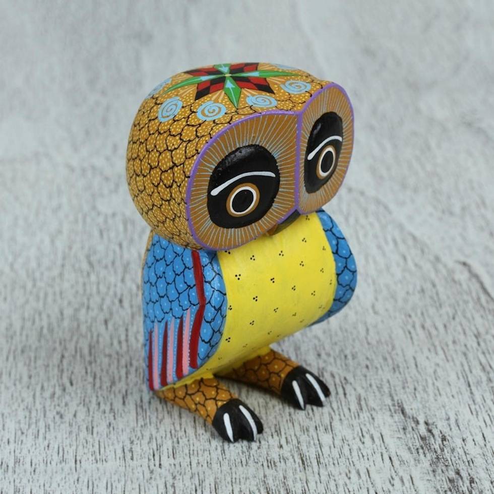 Mexican Hand Decorated Copal Wood Owl Alebrije Sculpture 'Dream Owl' Item ID: 2671808827