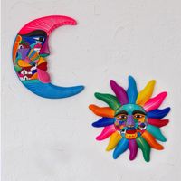 Mexican Hand Painted Sun and Moon Ceramic Wall Art 'Celestial Couple' Item ID: 2669897789