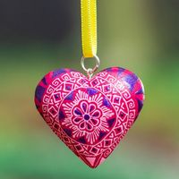 Mexican Hand-Painted Wood Alebrije Heart Christmas Ornament 'Fuchsia Alebrije Heart' Item ID: 2669926924