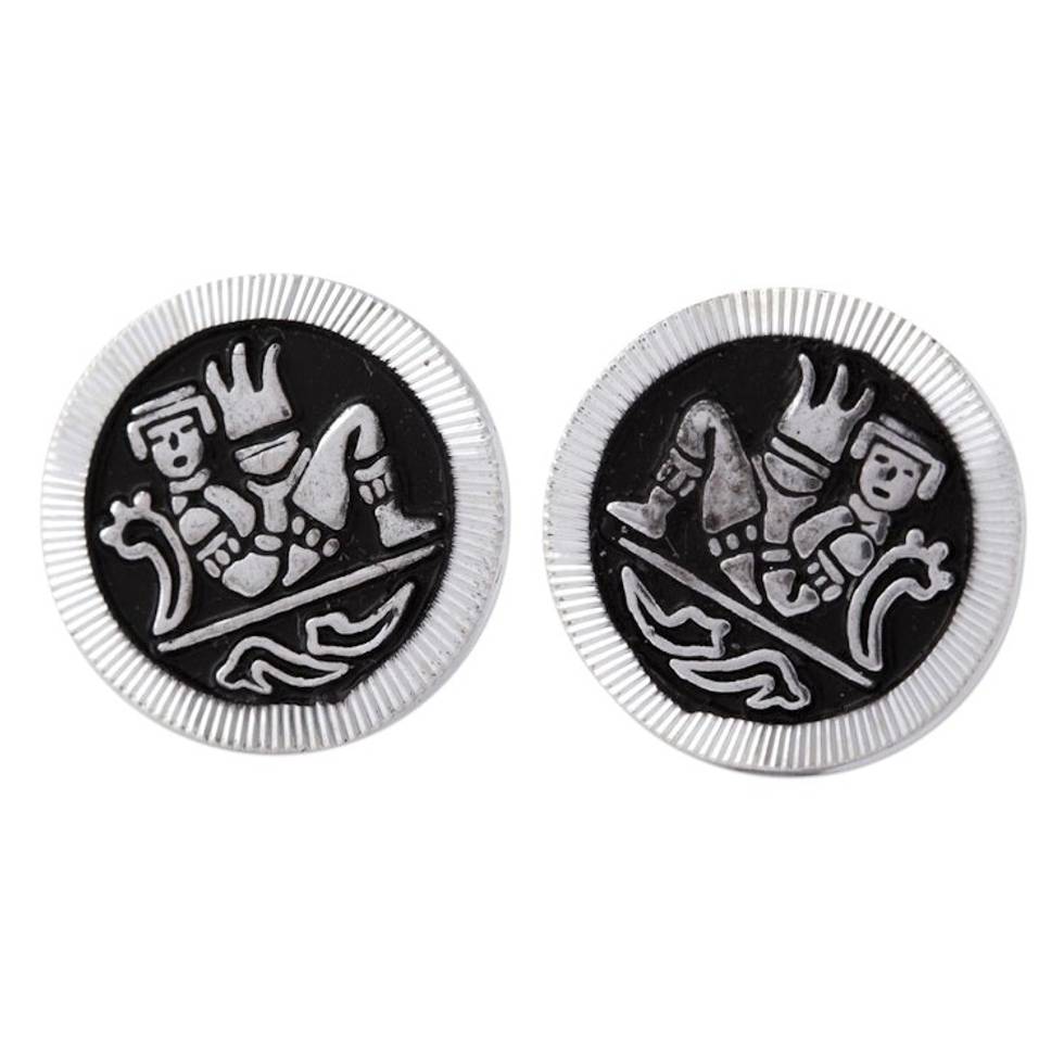 Mexican Handcrafted Enameled Sterling Silver Stud Earrings 'Maya Chac Mool' Item ID: 2671808994