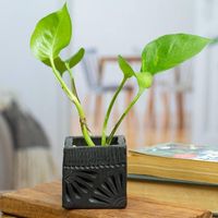 Mexican Handmade Barro Negro Black Ceramic Mini Flower Pot 'Square Peacock' Item ID: 2676646933