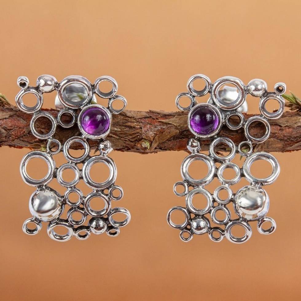 Mexican Modern Fine Silver Amethyst Earrings 'Mischief' Item ID: 2671808630