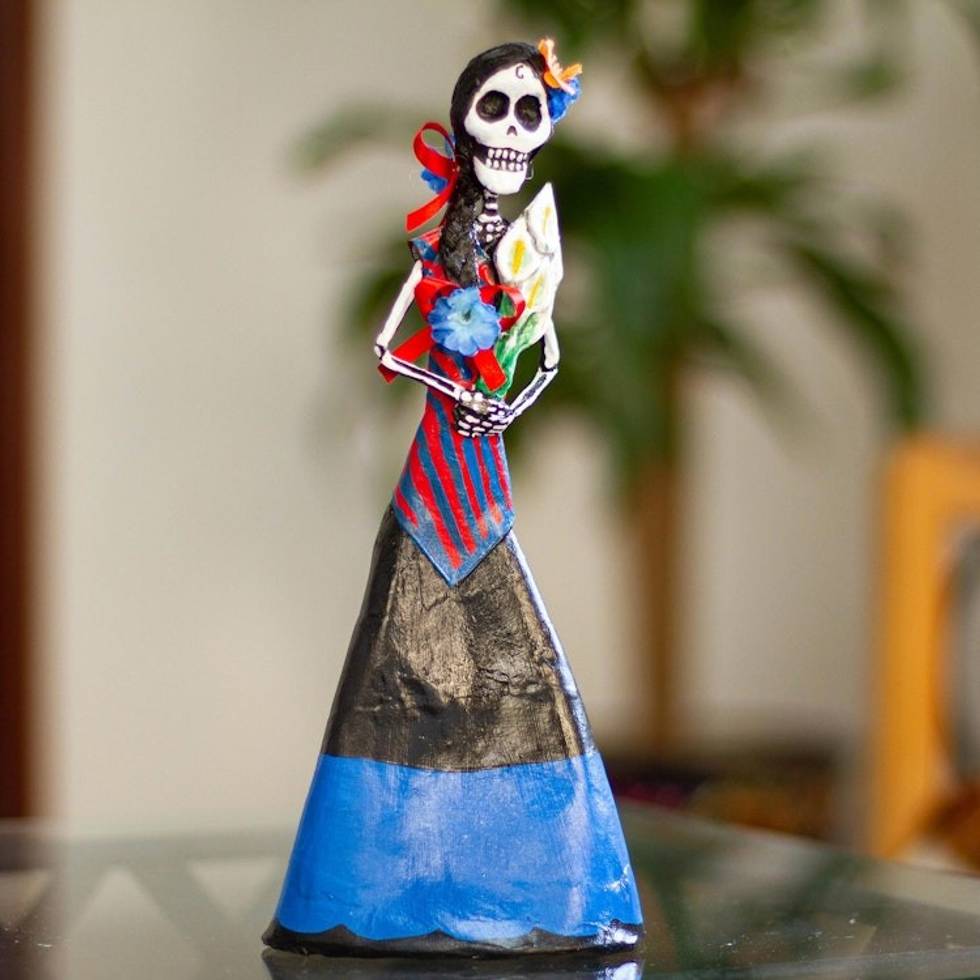 Mexican Skeletal Catrina Papier Mache Statuette 'Catrina with Lilies' Item ID: 2669897622